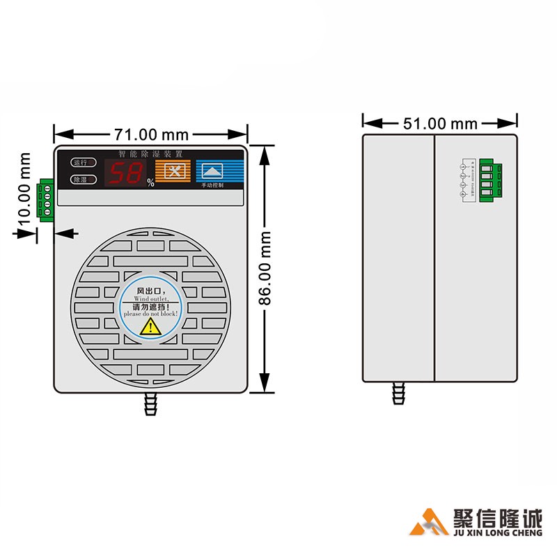 3、除濕風道主動引凝、排出氣體加熱降濕,有效達到了對電氣柜密閉空間防潮除濕的綜合治理;